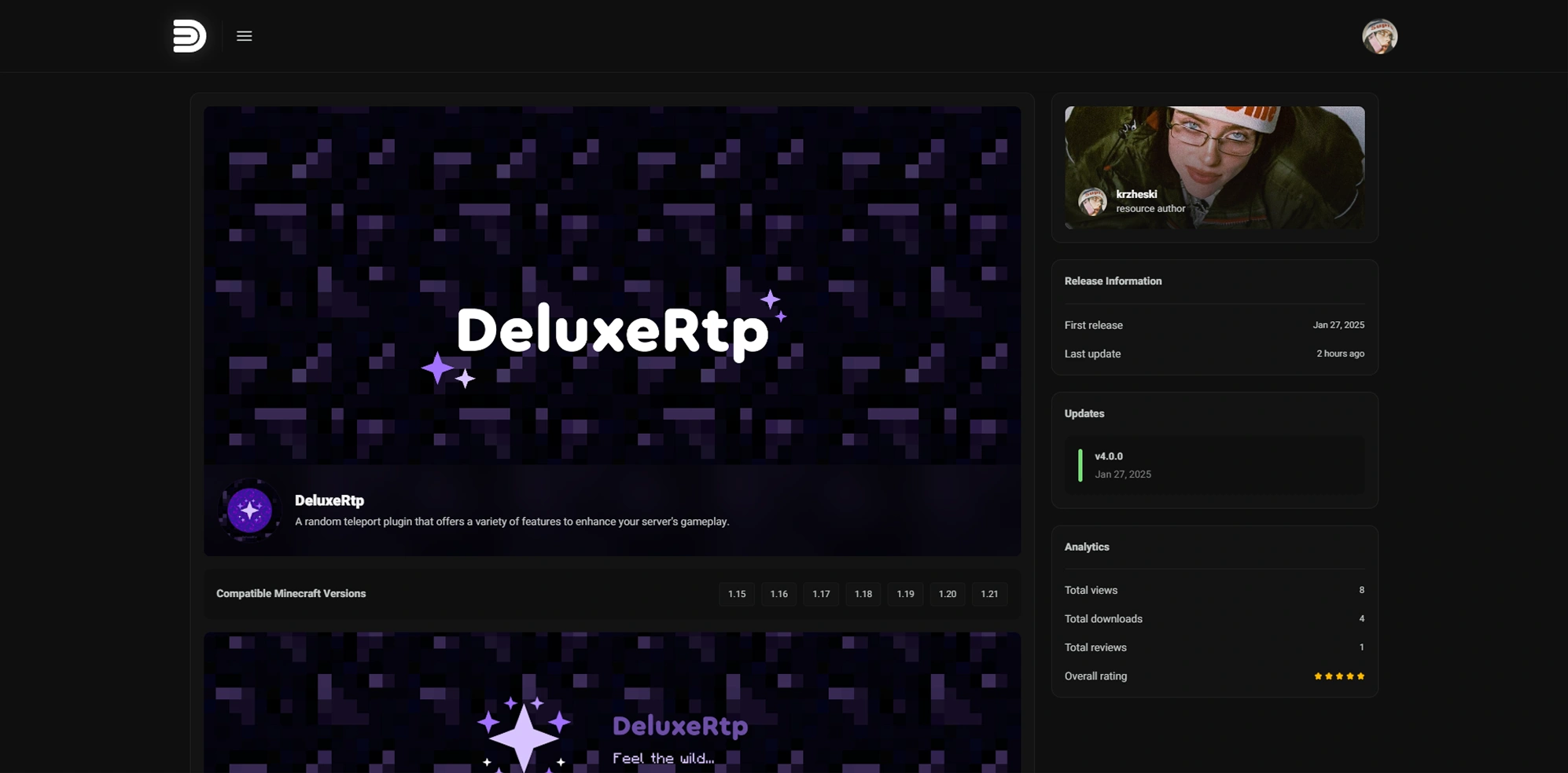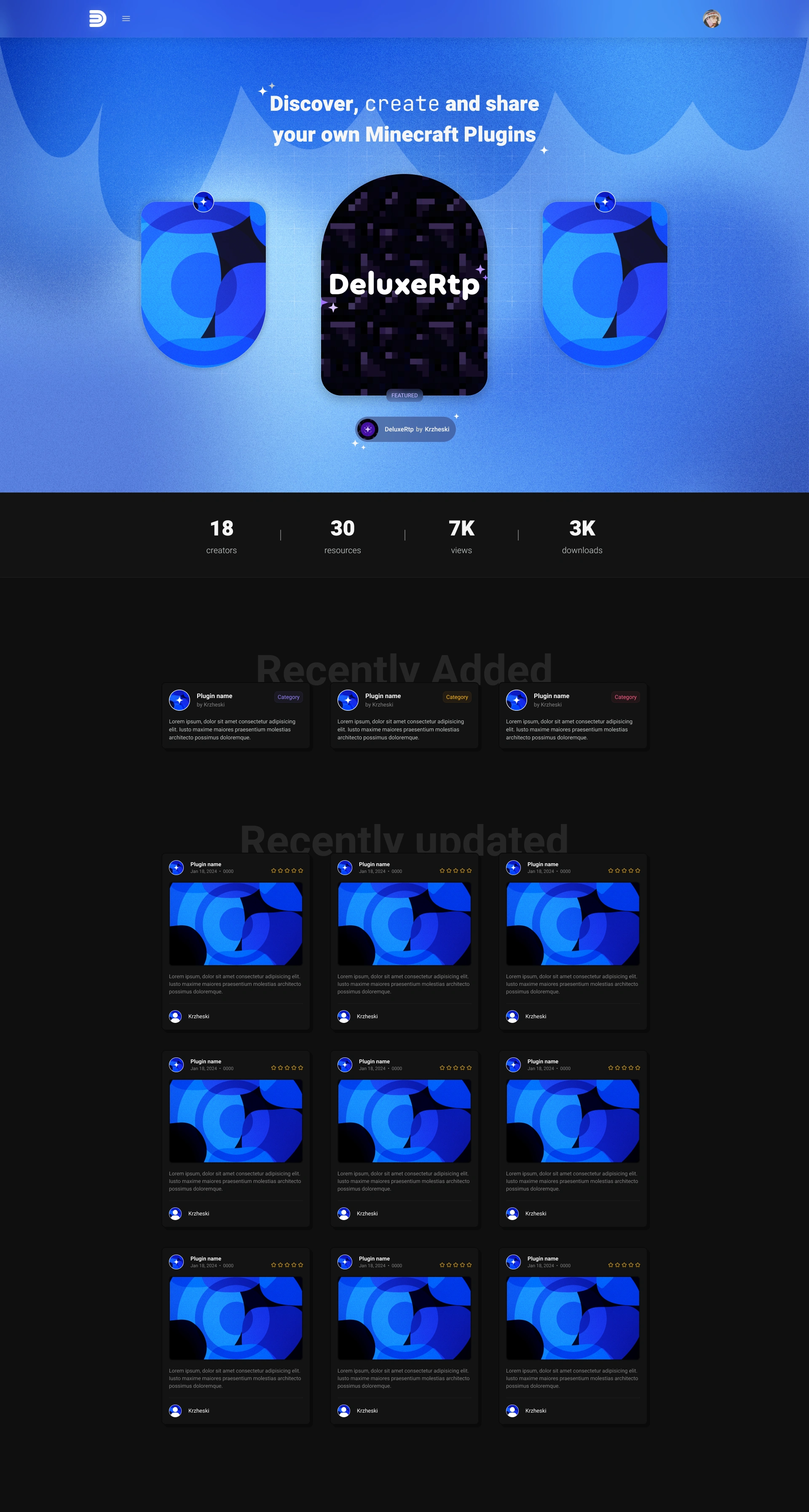 A modern Minecraft plugin marketplace with a clean, intuitive interface that makes discovering, managing, and showcasing plugins effortless.